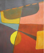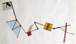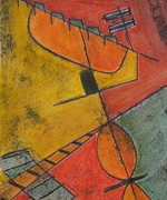 On my second morning at Il Collegio, while having breakfast in The Doctor's House/Castle where I was staying, I noticed the TV aerials on the rooftops. I found them charming and humorous. They reminded me of music stands. So I spent the day doing a series of drawings of my rather unusual subject, using fibre tip pens and pencil as my medium. In the days that followed, I did a number of variations on one of my designs (aerial right): in monoprint (with fibre tip pens and pastel) and acrylic.